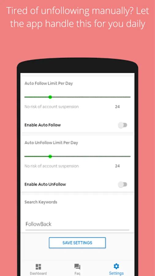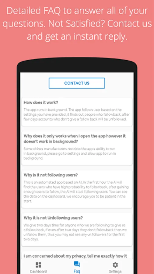 - Unfollow notifications: Get notification for new followers and unfollowers, turn off or configure the frequency of notifications in app settings.
