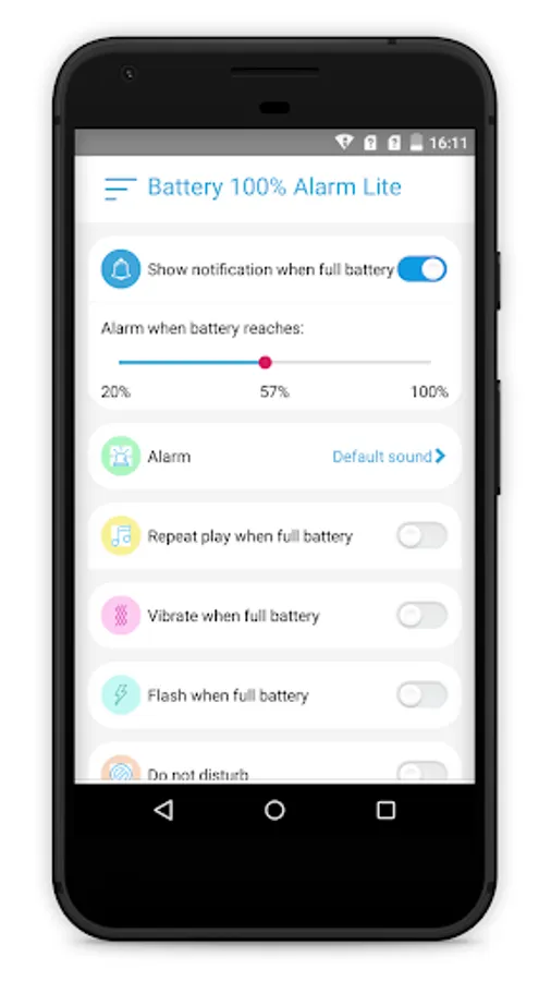 The Overcharging of battery can damage battery so it should be plugged out when it reaches 100%. So Battery 100% Alarm Lite will help you to keep your phone's Battery healthy.