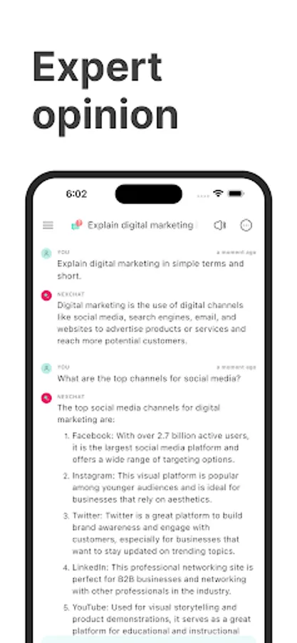 Need a reliable, versatile, and intelligent chatbot that can assist you in various aspects of your life? Look no further than NexChat, the ultimate AI companion designed to provide exceptional support across a wide range of topics and needs. With NexChat by your side, you'll have instant access to a wealth of knowledge and expertise, all conveniently packed into one powerful app.