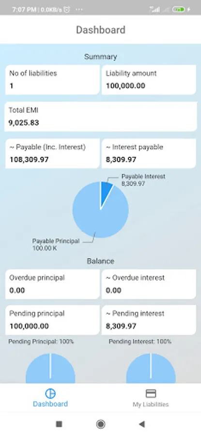 * Dashboard with summary of all of your liabilities