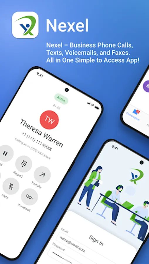 The Nexel app gives you access to a full office suite of feature-rich communications whether you are in the office, working remotely, or on the go. Connect from anywhere and have simple and immediate access to business calls, texts, voicemails, faxes, and more!