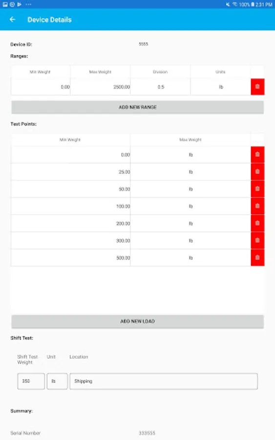 Technicians can easily access, perform and manage weighing system and measurement instrument calibrations from their Android phones and tablets. The Calibration List screen shows which devices have been calibrated and which are still outstanding. Standard features include testing for lab balances, industrial, truck and rail scales as well as Measurement Uncertainty and maintenance traceability.