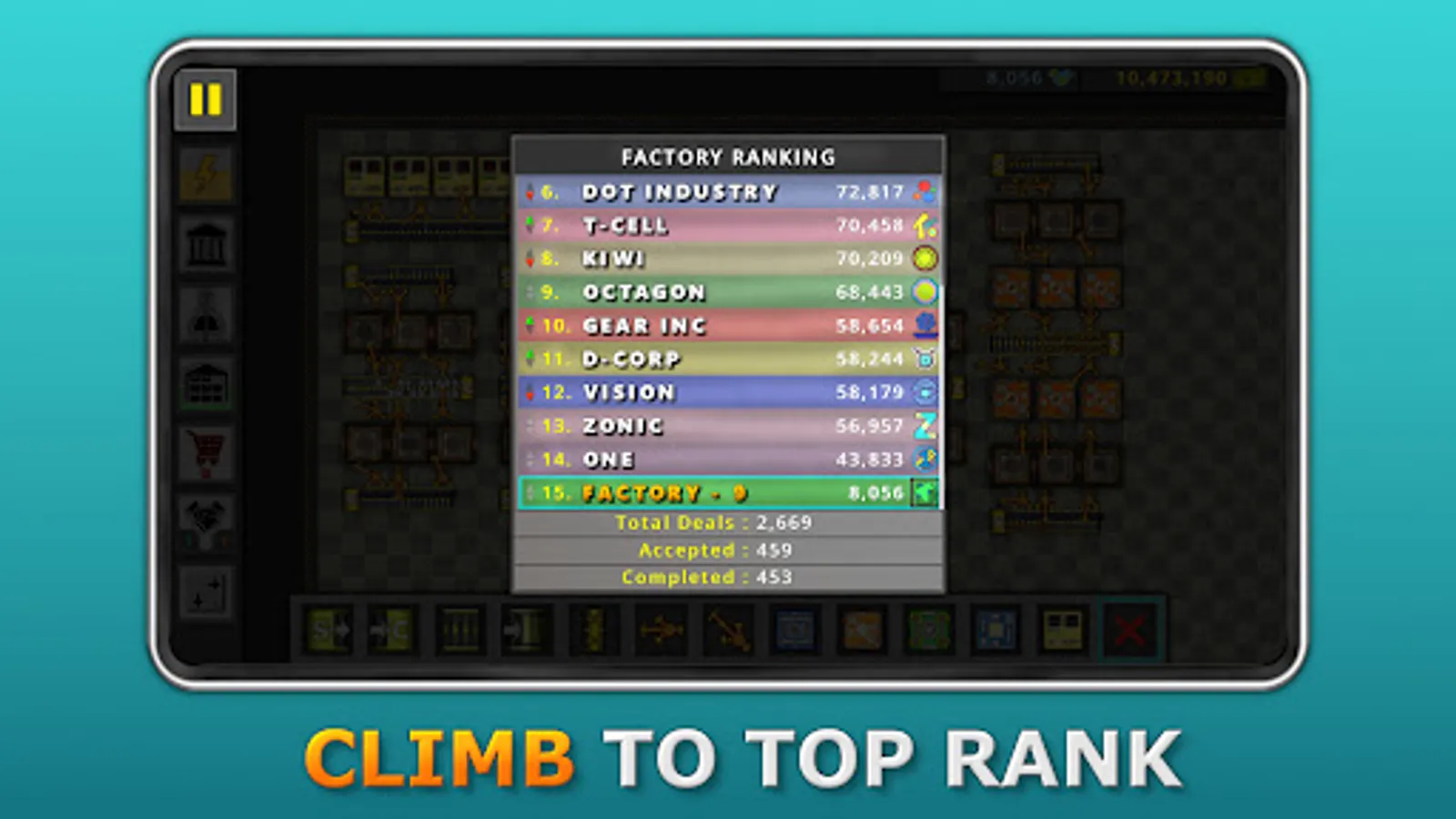 Your objectives are clear: become the ultimate factory by achieving top rank in the trading market, completing all research, and completing the final task. With addictive gameplay, stunning top-down graphics, and intuitive controls, this is the ultimate factory-building and trading experience!