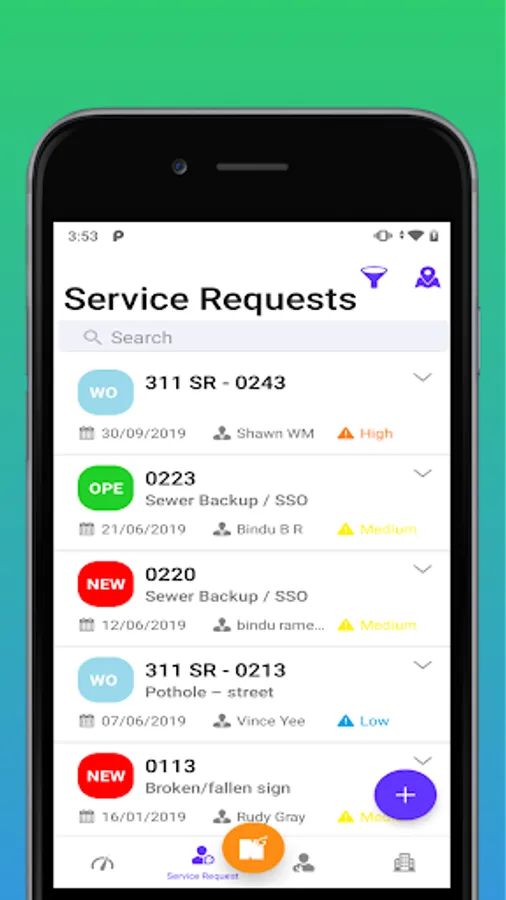 - SERVICE REQUESTS: Improve responsiveness, transparency and accountability with service requests that show up on the GIS map the moment they’re submitted by a customer. Field staff can instantly respond to service requests and see which ones are nearest to their current location, color coded by priority.