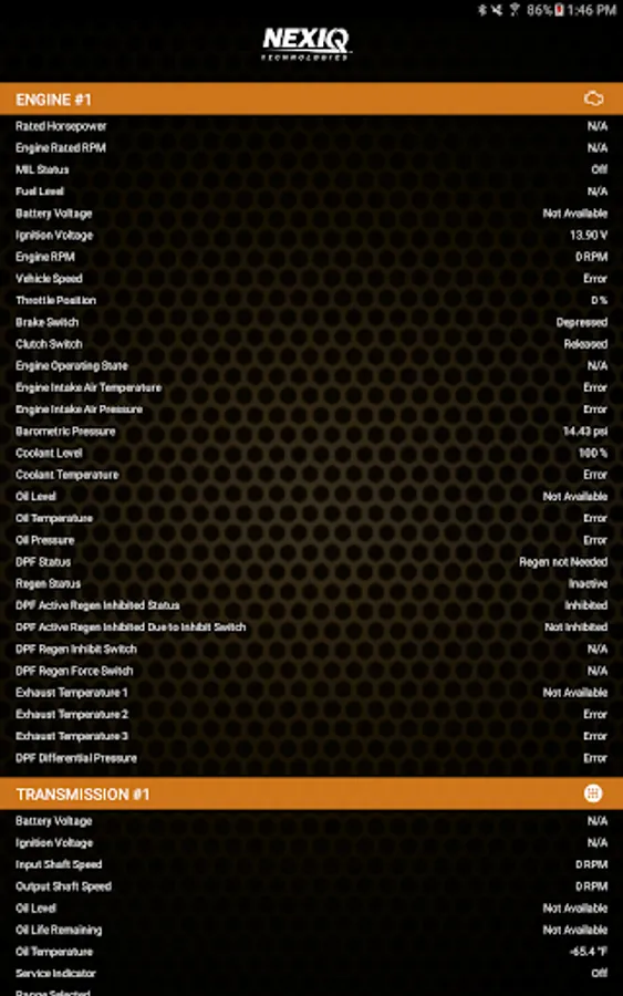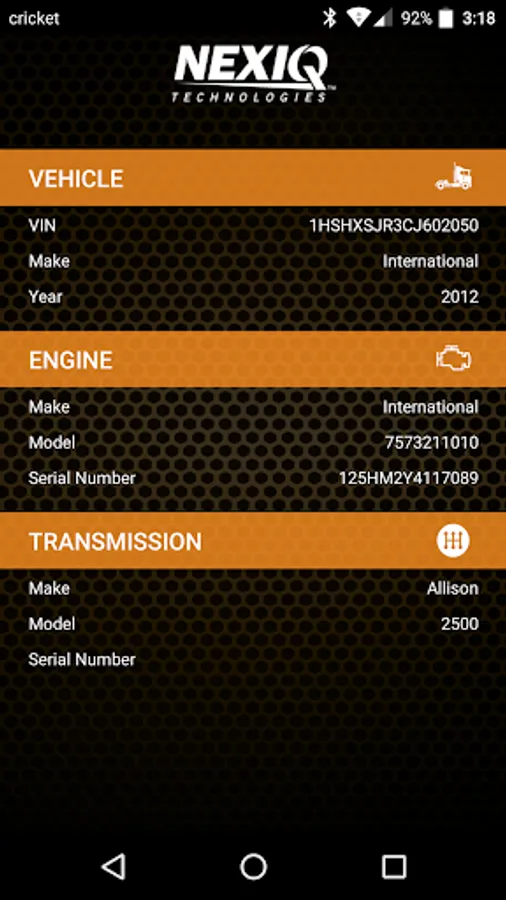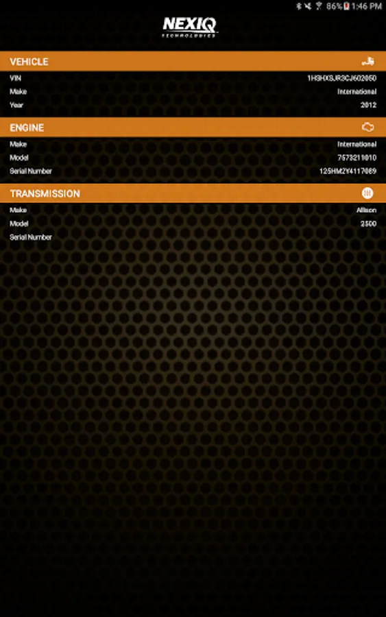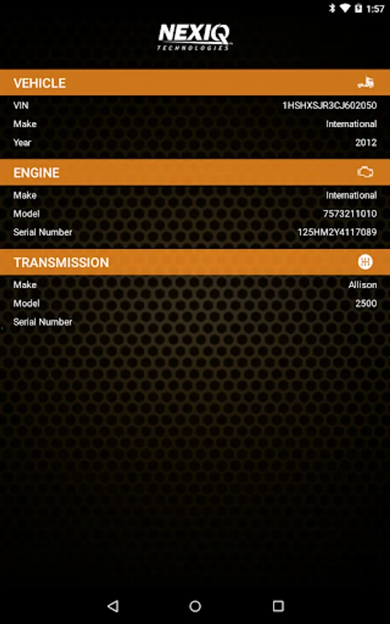 NEXIQ First-Link™ is an application that provides important features to the drivers and service technicians of commercial vehicles and equipment. These features help the driver connect the mobile device to the diagnostic port; they also monitor the vehicle's health status and increase the vehicle's uptime. If a Check Engine Light is illuminated, the application assists the driver to understand the cause so that he can seek assistance (i.e., service and repair), if needed. Service technicians can utilize the information gathered by the application to aid in vehicle service and repair.