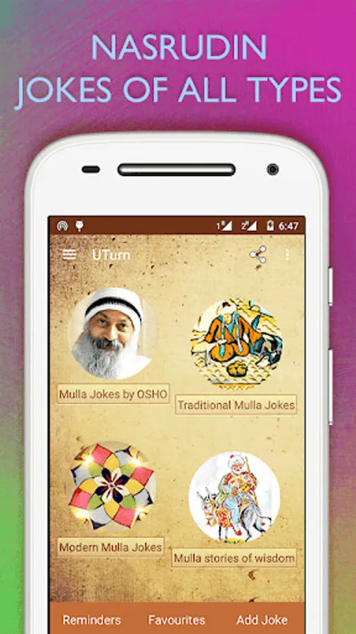 Uturn allows users to add their own jokes.We will add them to app database if we find them having Mulla's spirit.