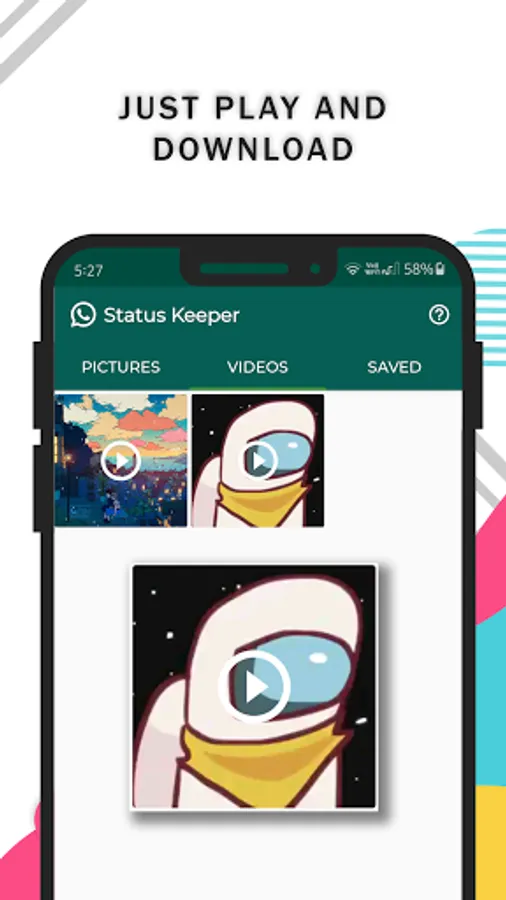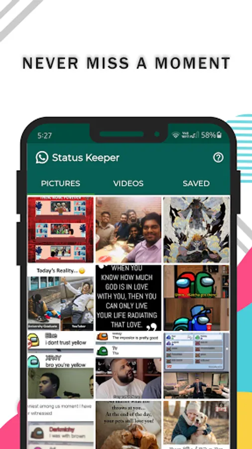 With this Status Keeper, you can save and manage the video status and images anytime, also you can easily share them with friends or repost downloaded status to other social media.