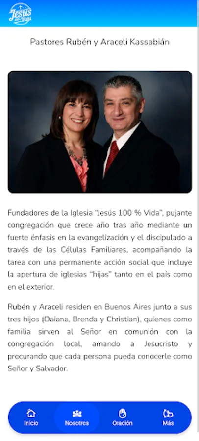 Founders of the Church "Jesús 100% Vida", a thriving congregation that grows year after year through a strong emphasis on evangelization and discipleship through Family Cells, accompanying the task with permanent social action that includes the opening of churches " daughters” both in the country and abroad.