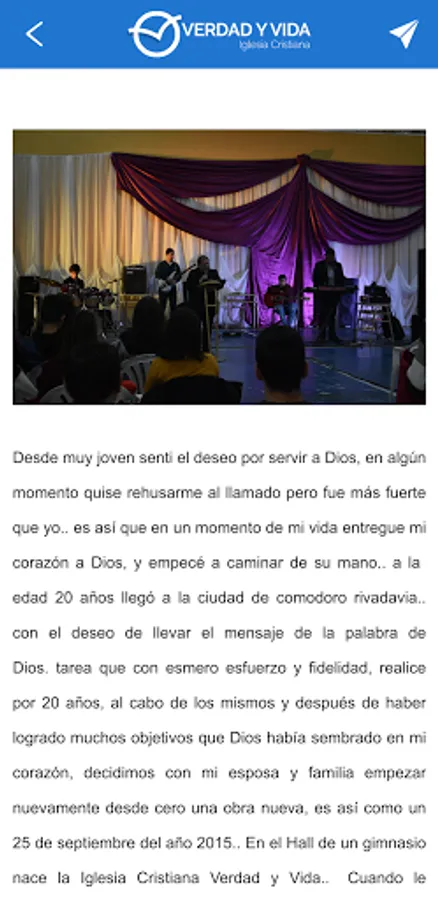 From a very young age I felt the desire to serve God, at some point I wanted to refuse the call but it was stronger than me ... so at one point in my life I gave my heart to God, and I began to walk hand in hand ... At the age of 20 he arrived in the city of Commodore Rivadavia .. with the desire to carry the message of the word of God. a task that with dedication and fidelity, I carried out for 20 years, at the end of the same and after having achieved many goals that God had sown in my heart, we decided with my wife and family to start a new work from scratch, this is how On September 25, 2015 .. The Truth and Life Christian Church was born in the Hall of a gymnasium .. When we asked the Lord why Truth and Life .. the Holy Spirit minister to us, that a ministry can grow can bear fruit but You cannot forget to really walk, because that will produce life. It is very easy to achieve goals, but we must never sell the gospel, Proverbs 23:23 .. And we start again.