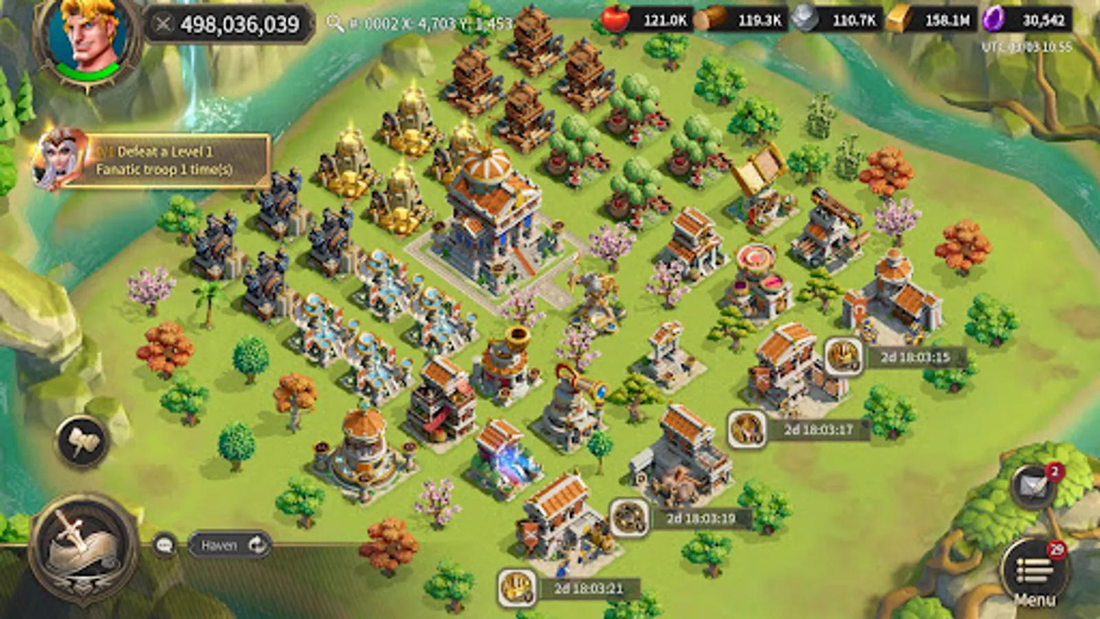 Upgrade the various buildings in your base to advance to new ages and see how your Sacred Land develops.