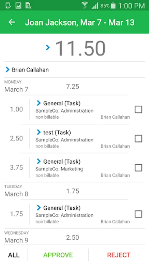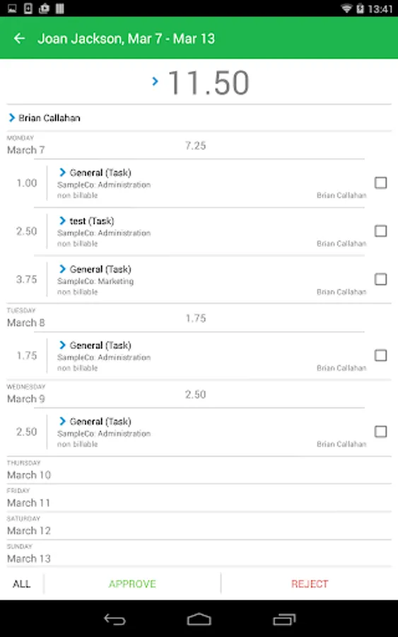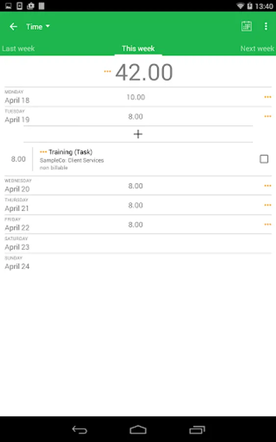 Nexonia's timesheets application allows user to enter time and then submit it for approval. Stopwatch functionality is built in. With the push of a button, all time entries and any modifications will synchronize with our full timesheet management solution.