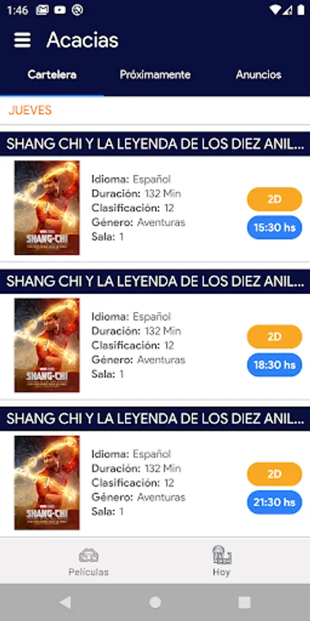 From our Application you will be able to have access to all the information of the films, opening hours and news of the complex. You can also access the purchase of tickets.