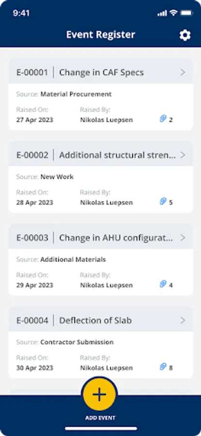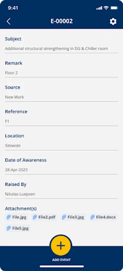 Use the Event Manager app to record these Events instantly when being aware: On site, during meetings or while working in the office. Simply record these Events and provide additional information. Quickly take a photo to support your Event.