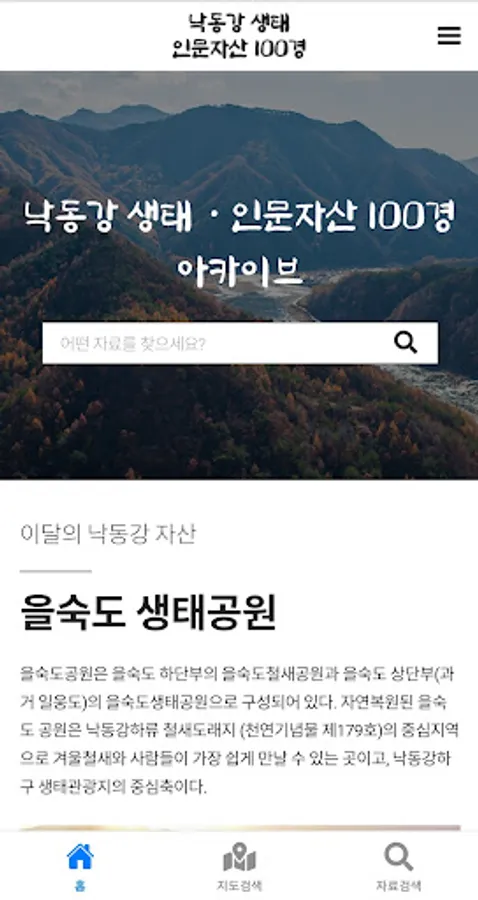 - Classification of various data such as Nakdong River source, trekking, seowon, pavilion, eco-tourism, hot spots, etc.