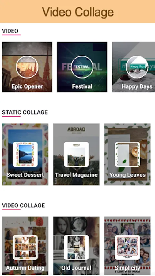 ⭐Choose Static Collage if you just want to select photos within a given frame.