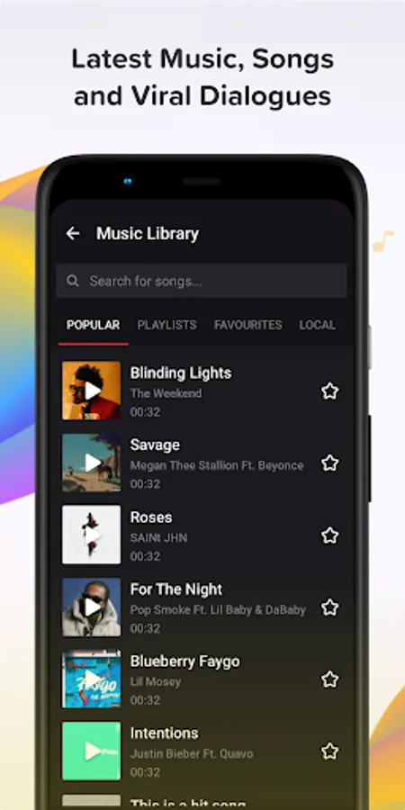 Trending topics on Moj Lite: Beauty, Dance, Lip-sync, Singing, Tech, Cooking, Comedy & Bollywood.