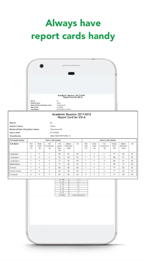 marks/grades, Progress Report, Home-work and report cards, in addition to tracking