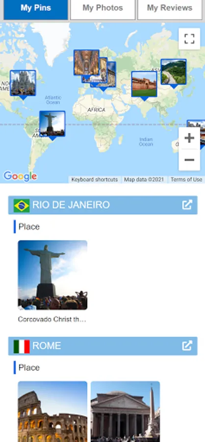 Explore the most popular places in the world and pin the places that you want to visit on your next trip.