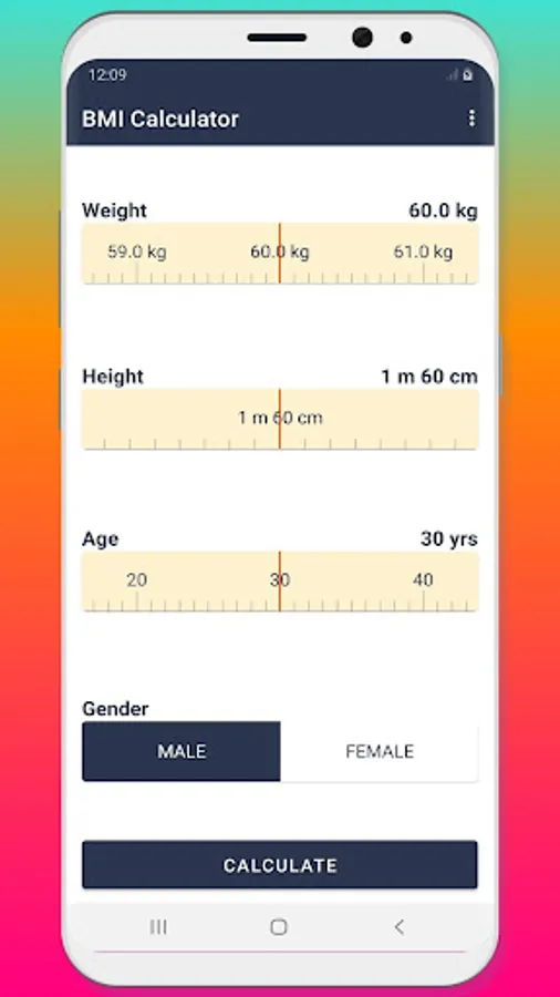BMI Calculator calculates Body Mass Index based on the entered weight and height.