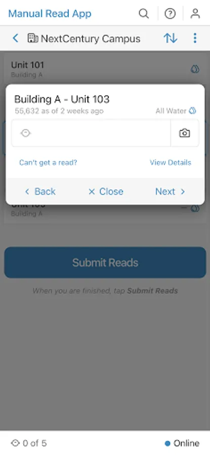 The Manual Read App by NextCentury is used to assist with collecting reads to be input into the NextCentury system.