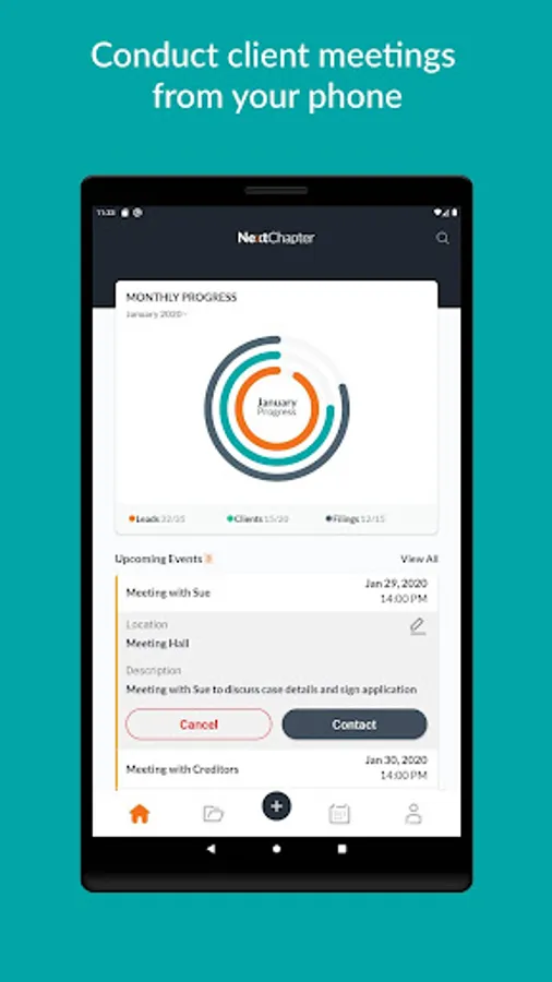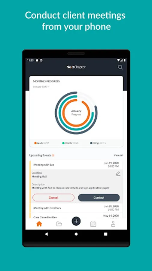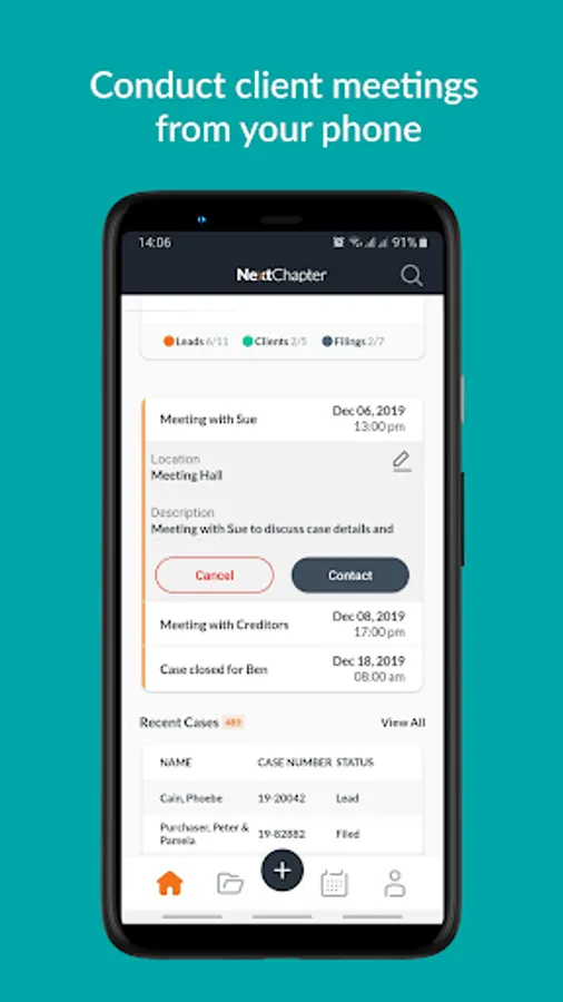 With NextChapter's mobile application, you can conduct client meetings and reference any case information or documents on-the-go.