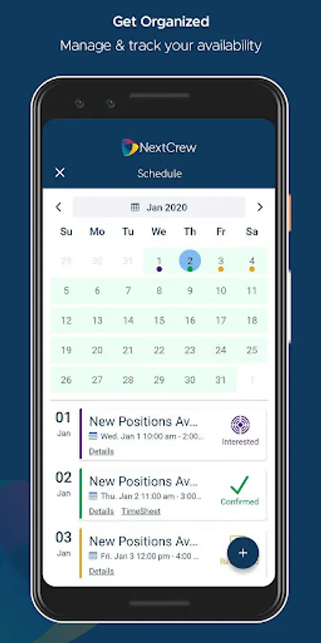 Download the NextCrew app to stay connected with your staffing agency on the go. With our intuitive and easy to work with the mobile app, you can easily apply for jobs, manage your profile and even communicate with the staffing coordinators.