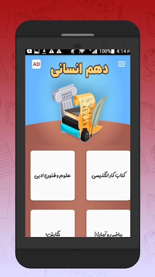 شما با دانلود برنامه کتاب های درسی پایه دهم انسانی می توانید در هر شرایطی درس بخوانید ، حمل و نقل کتاب های درسی بسیار سخت و طاقت فرسا می باشد ، بنابراین با برنامه کتاب های درسی دهم انسانی می توانید در ماشین ، مهمانی ، پارک ، مسافرت و در هر جای دیگری کل کتاب های درسی خود را که به صورت پی دی اف کاملا رایگان و آفلاین در این برنامه قرار داده شده به همراه داشته باشید و از آن استفاده کنید.