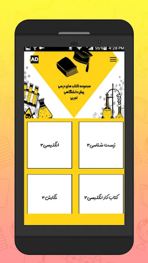 شما با دانلود برنامه کتاب های درسی پیش دانشگاهی رشته علوم تجربی می توانید در هر شرایطی درس بخوانید ، حمل و نقل کتاب های درسی بسیار سخت و طاقت فرسا می باشد ، بنابراین با برنامه کتاب های درسی پیش دانشگاهی رشته علوم تجربی می توانید در ماشین ، مهمانی ، پارک ، مسافرت و در هر جای دیگری کل کتاب های درسی خود را که به صورت پی دی اف کاملا رایگان و آفلاین در این برنامه قرار داده شده به همراه داشته باشید و از آن استفاده کنید.