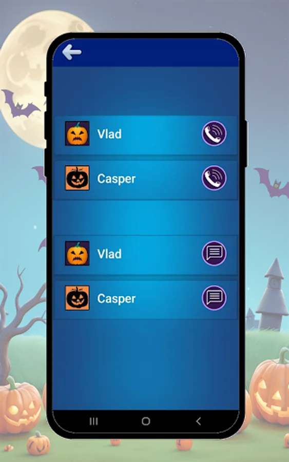 Download and enjoy Prank Call Halloween Games for FREE now! Itβs a spine-tingling and exciting calling prank app for every age with a Halloween theme. This gag is cute and simple. You pretend to get a phone call from Halloween, complete with eerie sounds and horrifying surprises. We will display the spooky caller ID, and you can play the sound of eerie Halloween sounds to make people believe youβre talking with Halloween creatures. There's even a thrilling Halloween Countdown to build suspense!
