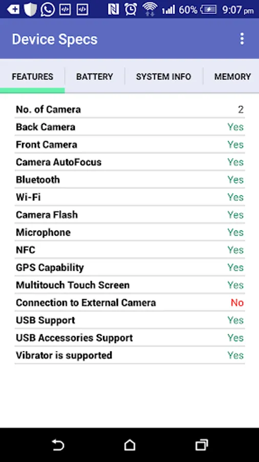 This app helps you to know your Android device Features , Battery Health , Memory and System Information details.