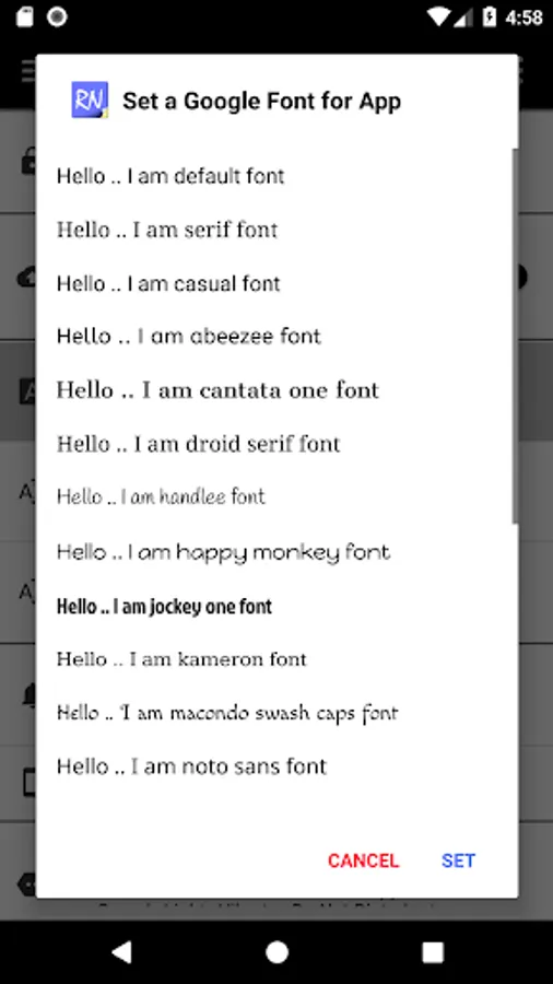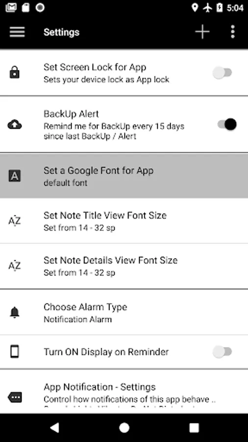 - Choose and set App level font from a choice of 22 fonts.