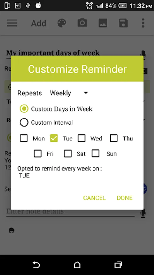 - Customize options available by day of week and day of month for weekly and monthly reminders.