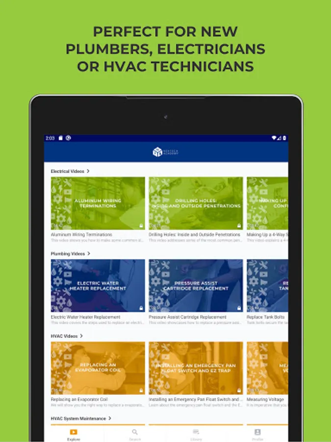 Are you a residential plumber, HVAC technician, or electrician? Be prepared for any residential task with how-to videos in the palm of your hand. The NexTech-On-The Go app: