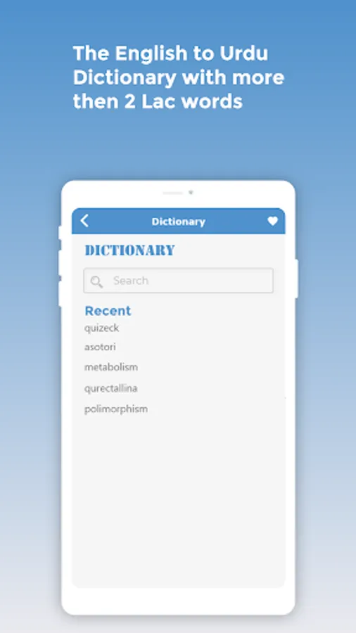 - The App also contain feature English to Roman Dictionary, you can search any English or roman word and get its meaning in Roman, English and Urdu.