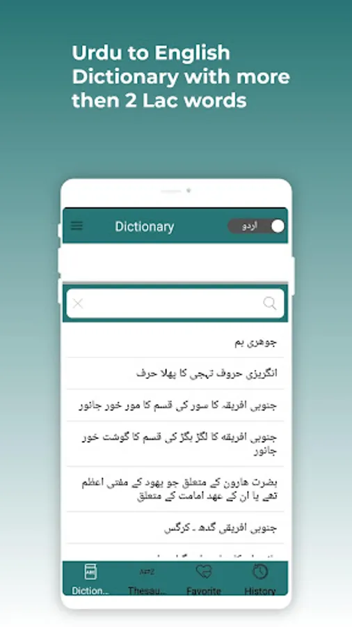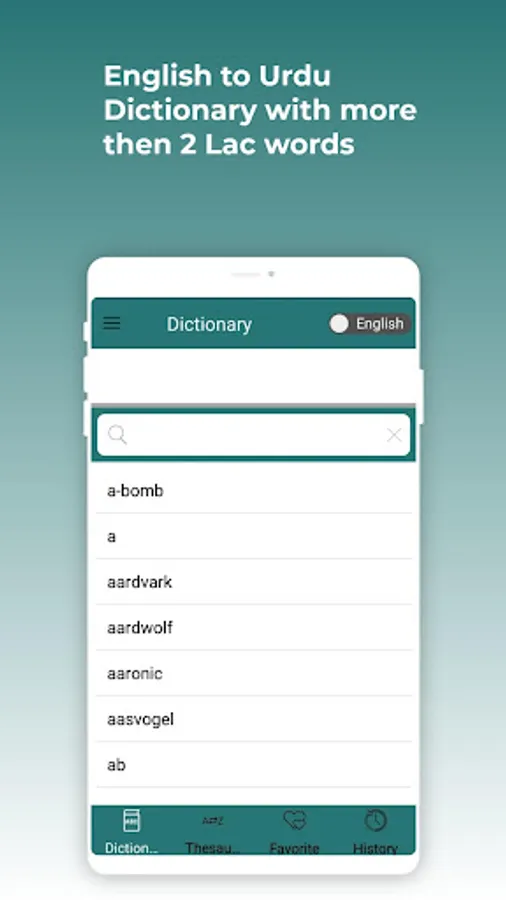 English and Urdu Dictionary is not only an Urdu Dictionary but also a learning tool. You can use this English dictionary app when you have no internet connection. You can add words to the favorites and remove words from the favorites when remembered perfectly. When you start typing, you will see some words starting with the letters you typed. The Urdu dictionary app searches in a database for the matching words. Also, this App (English Urdu dictionary) provide history maintaining feature through which you can check later what you were studied.