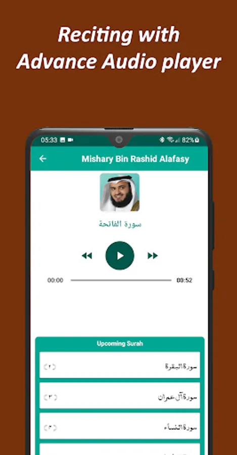 • Search Bar: Facilitates in choosing the desired Surah of the Holy QURAN.