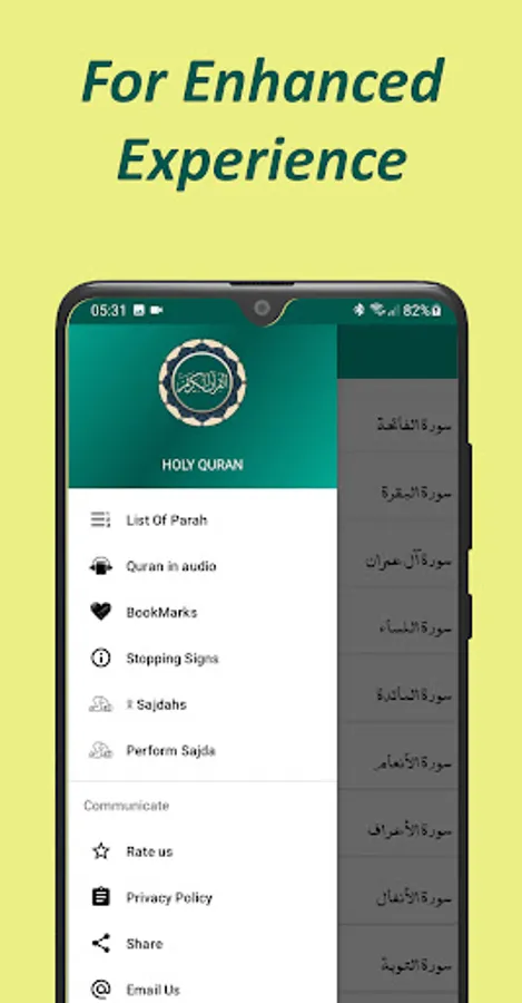 • Sajdahs: 14 places in the Holy Quran where one has to perform prostration in front of the Almighty are also separately mentioned in Settings.