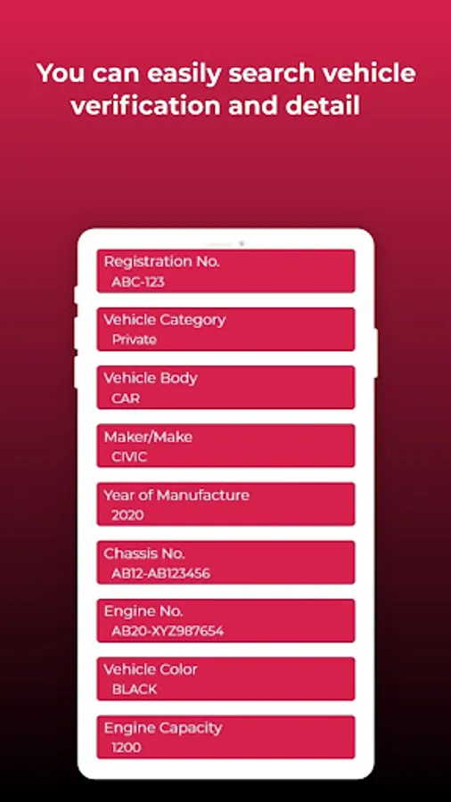 Vehicle Verification Pakistan lets you verify vehicle registrations-detail of any type anywhere in Pakistan (except Balochistan (BA)). The app features easy to use vehicle number input forms and information display.