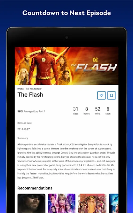 Track when the next episode of the tv show you love will be available on TV. You can even set up reminders to watch it at a specific time, so that you never miss an episode!