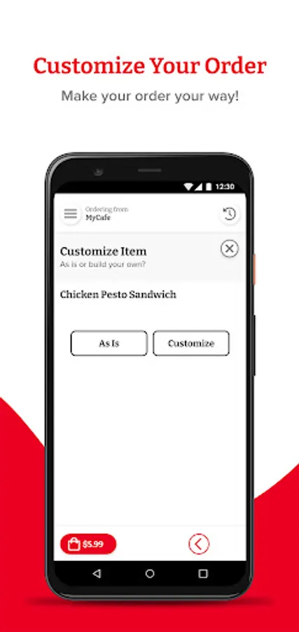 Breakfast, lunch, or anytime in between; MyCafe satisfies your cravings. Whether it is a coffee to start your morning, or a much needed break for lunch, MyCafe allows you to quickly and seamlessly see what delicious offerings are available today. Browse the daily specials or reorder your existing favorites - simple and easy. MyCafe allows you to order just the way you like it with customizable menus and chef recommendations. Have your items ready when you want it, where you need it, by simply selecting the time and location where you would like to pick up your food. Quickly tap and pay with flexible payment options and you are ready to take on your busy day.