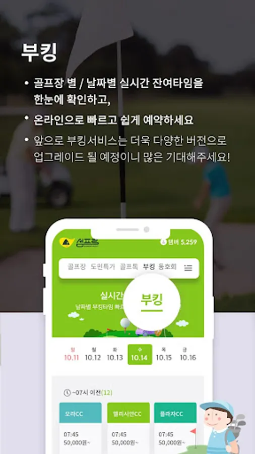 실시간 조인게시판, 부킹정보에 각종 이벤트, 레슨정보 등등 마음껏 활용하세요!