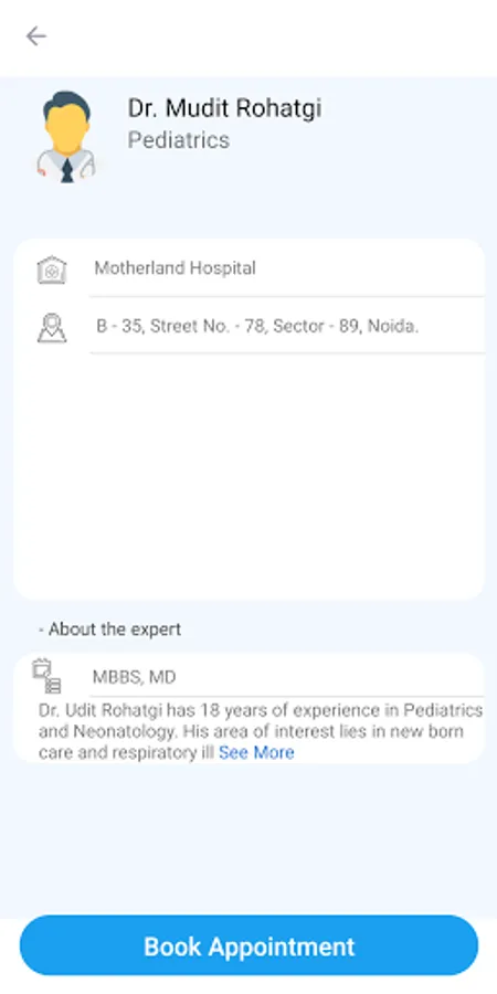 Using this app, a patient can book his appointments, schedule a video consultation with a doctor. He also has the option to book appointments for his family members, and manage their care.