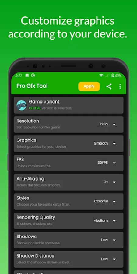 Sonic Gfx Tool is a free app in which app you can customize your game graphics settings according to your needs. No matter if your phone is 2GB ram or 4Gb ram you can enjoy smooth gameplay with this app.