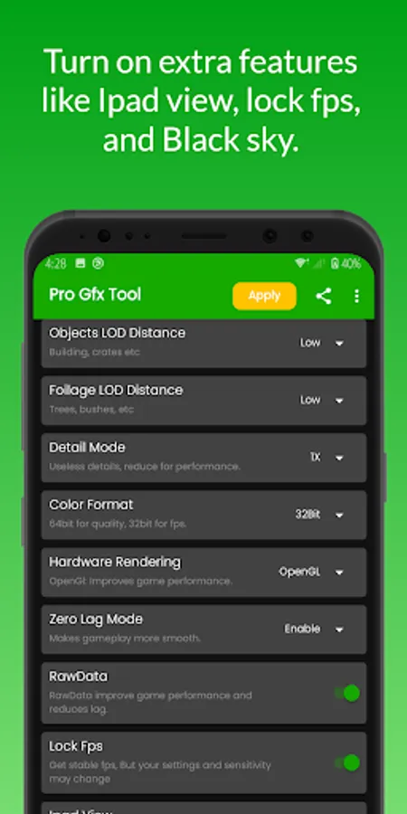 • Turn on Rawdata and Lock Fps option to make your game more smoother.