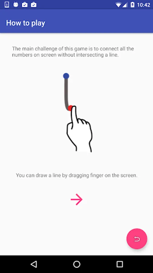 The user starts at a red ball and a number is automatically generated highlighted in green which user needs to connect dragging line from red ball to new number. Then new numbers are generated which user connects without intersecting lines. Once all numbers are connected user wins the game.