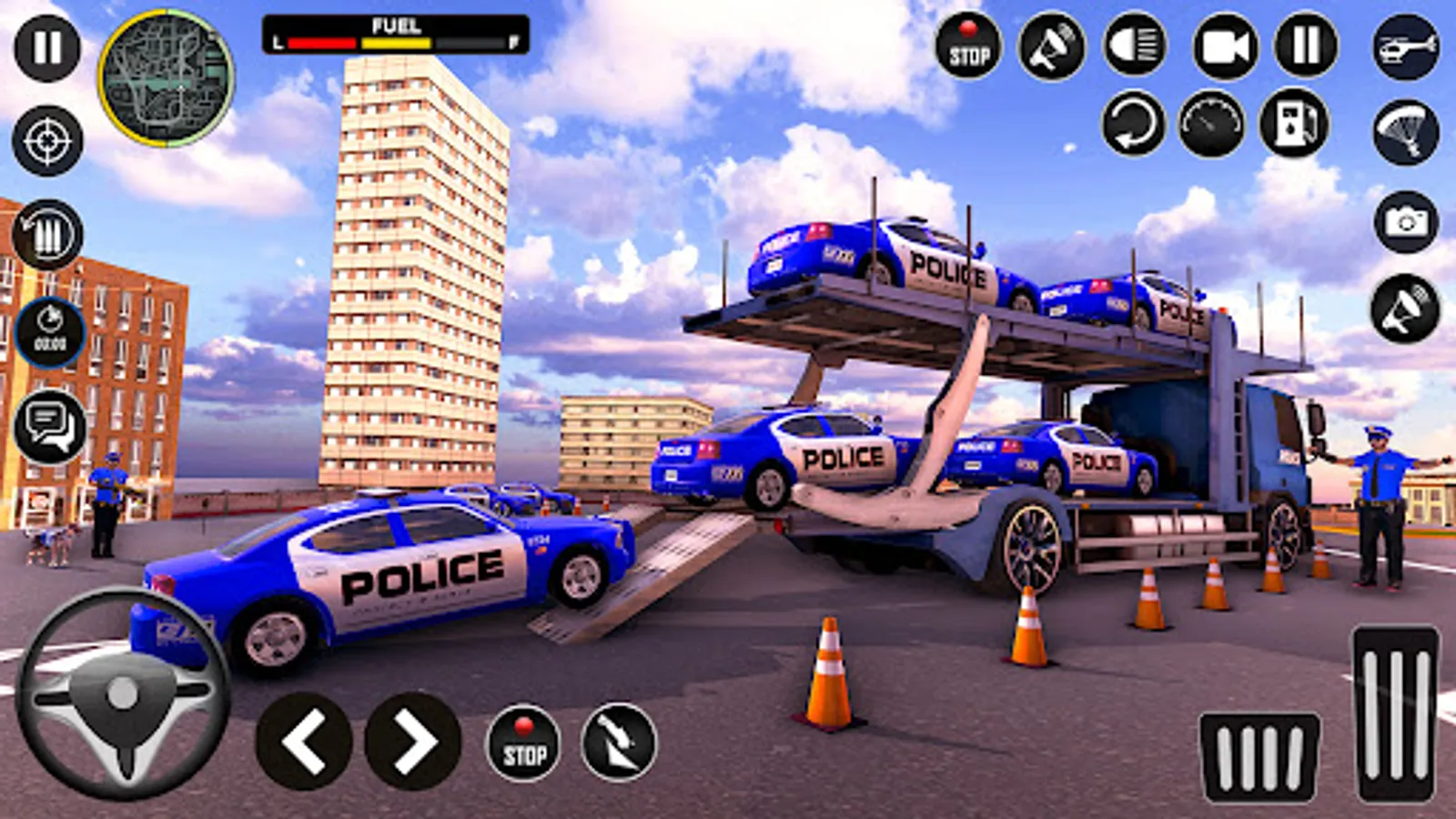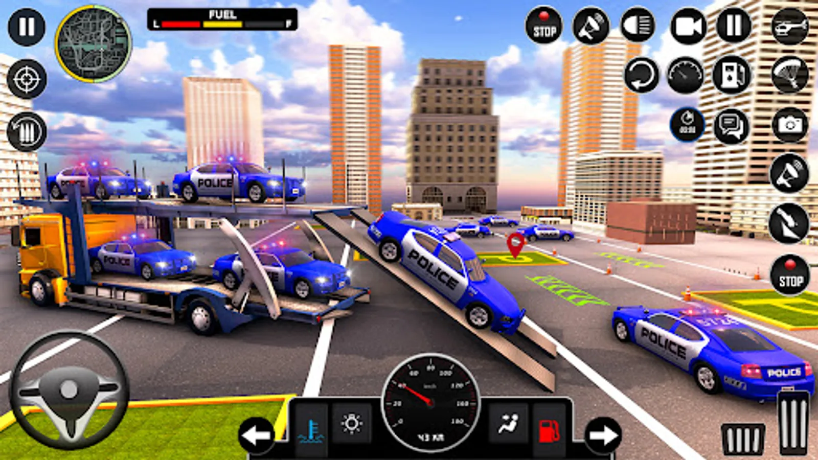 • Police cars are transferred from one location to another in this transport-themed driving game