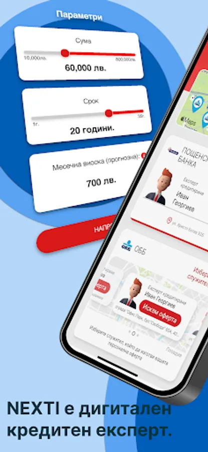 NEXTI is a digital credit expert - the only mobile application of its kind in Bulgaria, which works real and personal for you. NEXTI communicates with the best banks in Bulgaria and as a result provides you with personal offers for bank financing, from which you can choose.