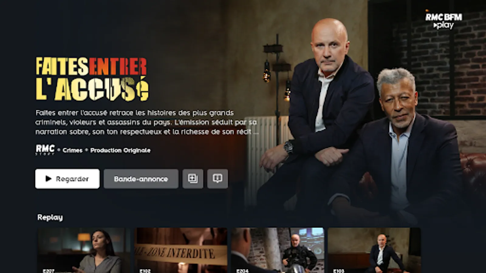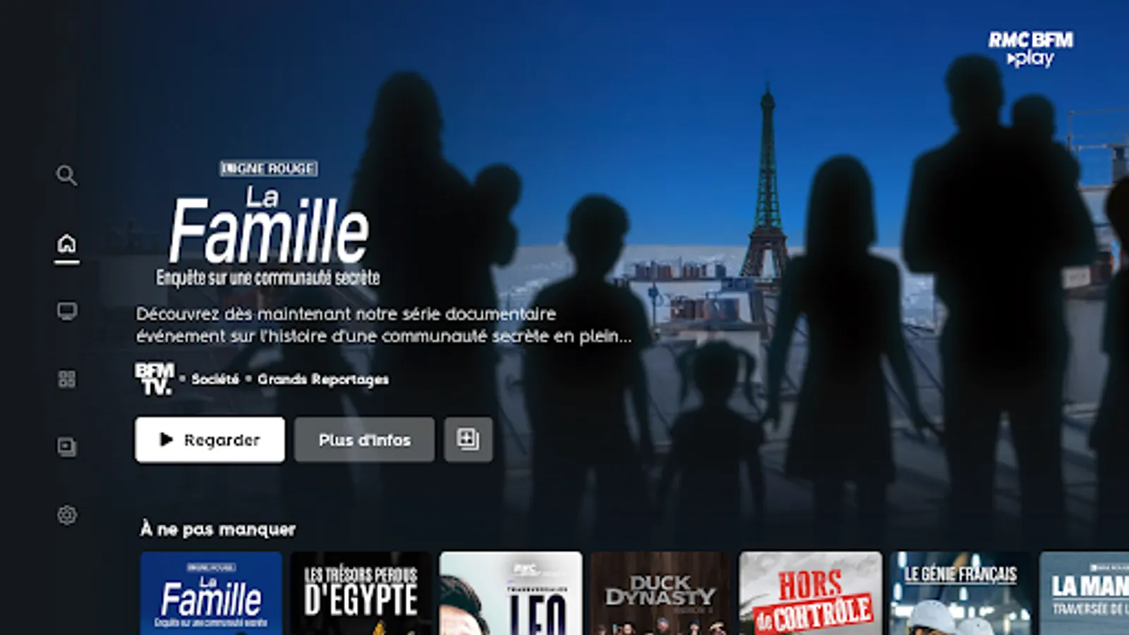 RMC BFM Play is the best in factual entertainment, news and documentaries: News & Society, Sport & Mechanics, Crime & Investigation, Science & Technology, Adventure & Animals, Cooking & Entertainment, History & Civilizations, etc. .