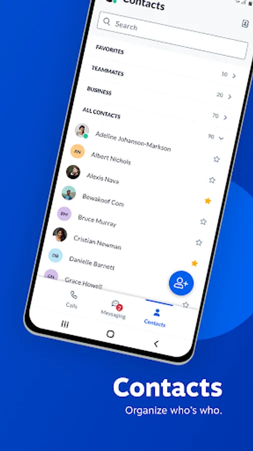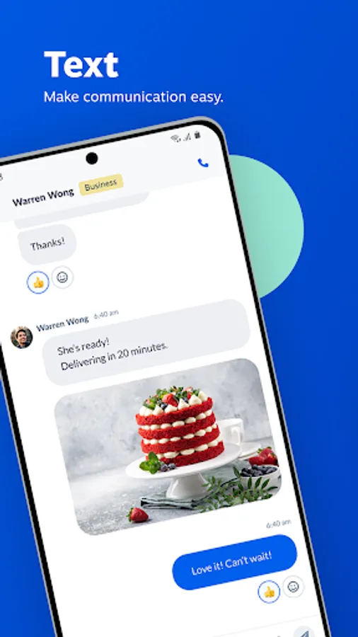 Separate your work life from your personal life. Get a business phone number to call, text, and manage contacts.