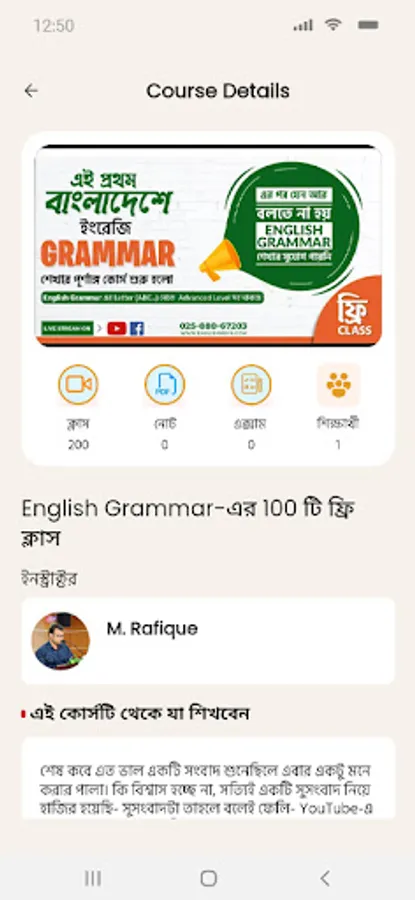 In addition to thousands of English lessons, there are many more important classes arranged sequentially. For those who use Facebook and YouTube and want to have organized classes all together in one place, then this English Moja app will be of great help. This app has been created to meet the needs of millions of students outside the country including Bangladesh. In the upcoming days, we believe that this English Moja app will be very useful and productive for all students in the field of education, inshallah.
